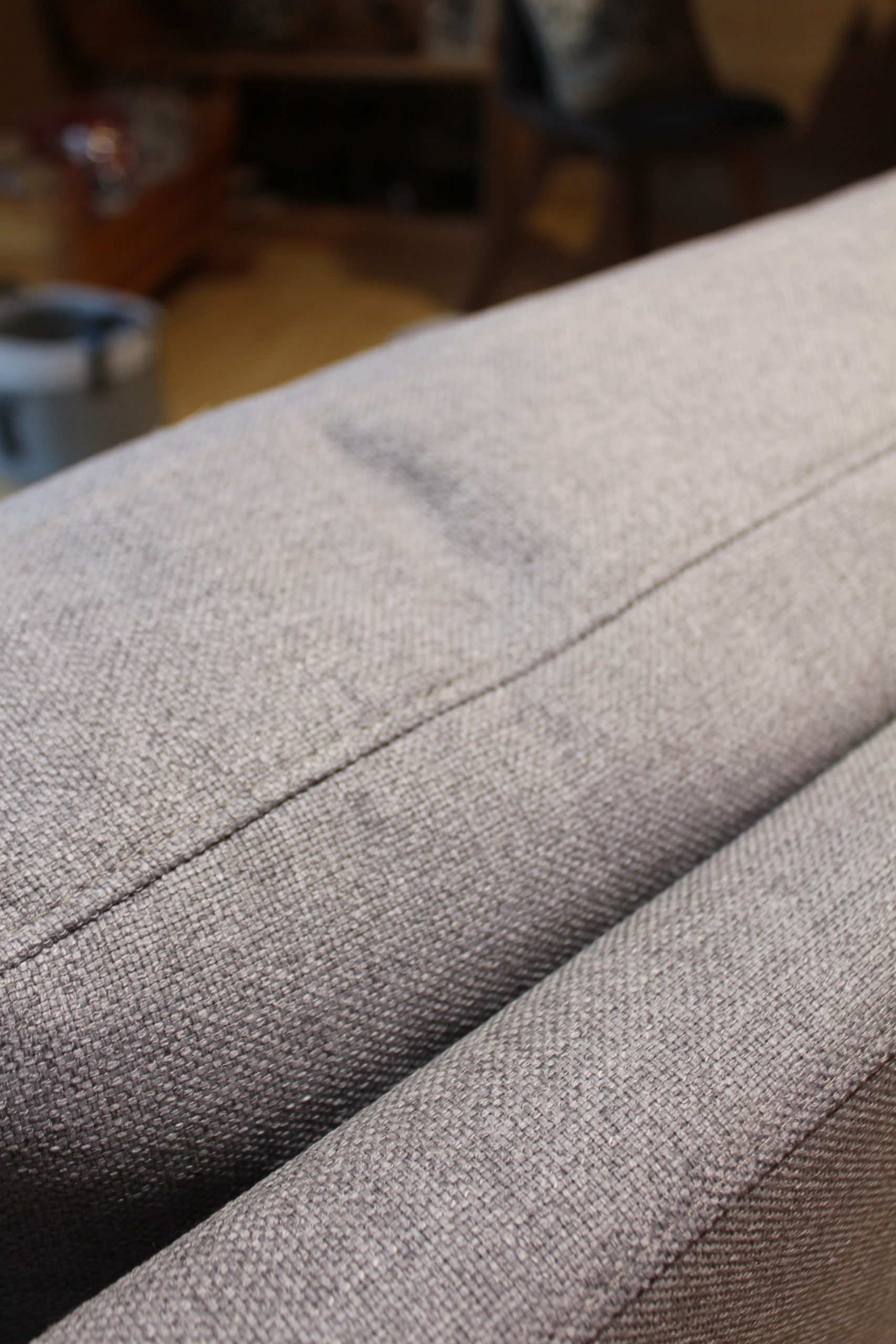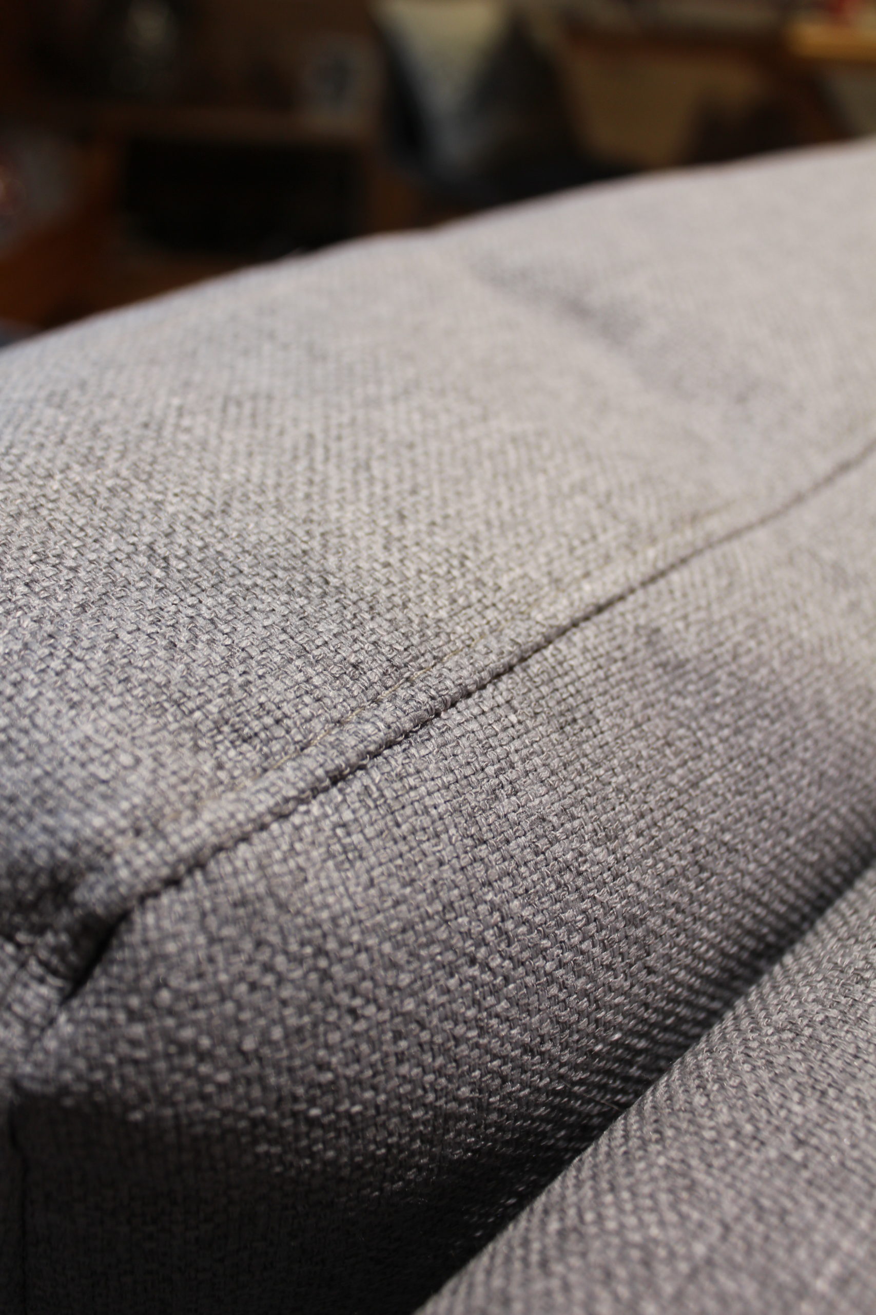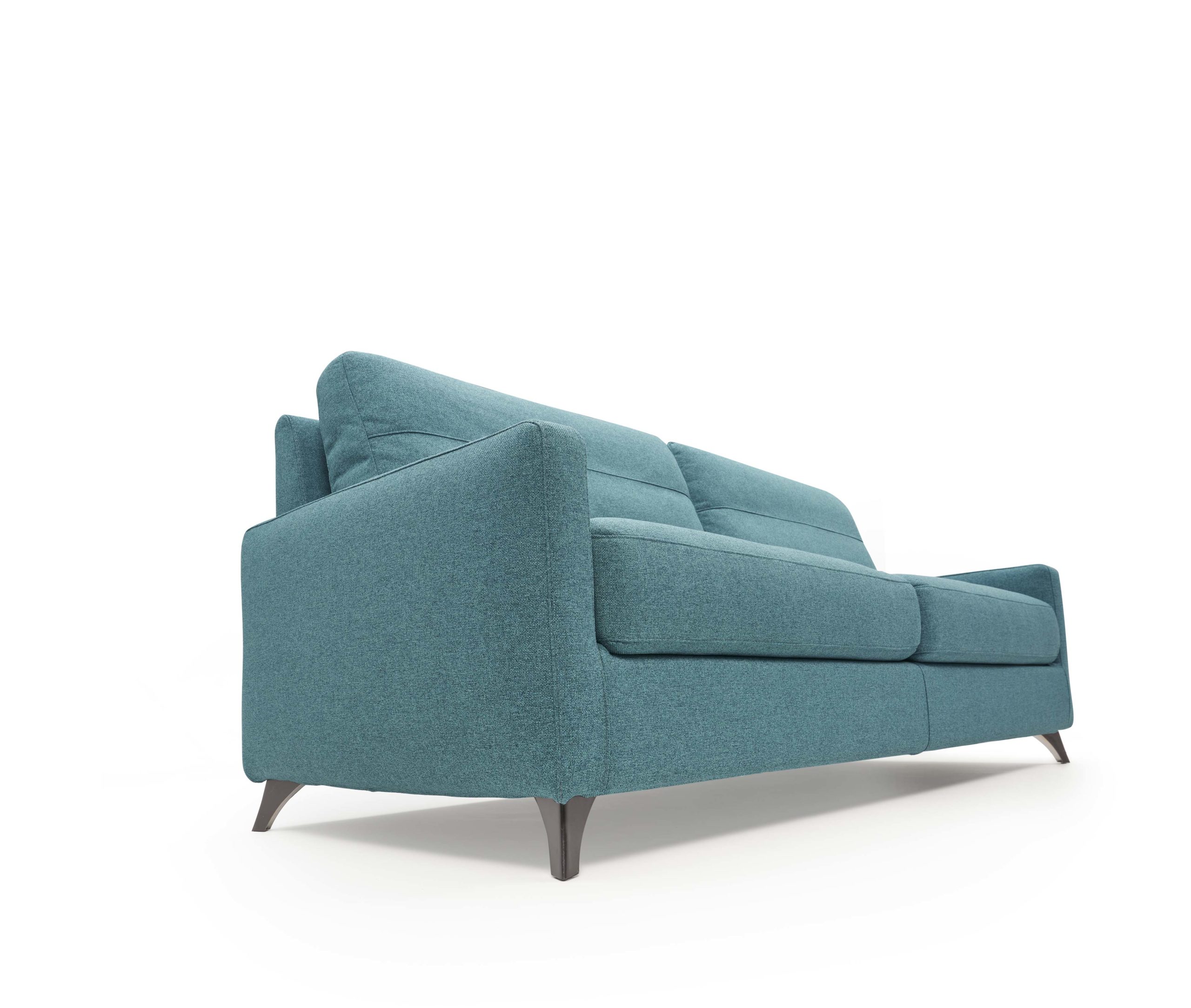 Struttura in legno di abete e truciolare con imbottitura in poliuretano, rivestita in tessuto protettivo accoppiato. Molleggio realizzato con nastri elastici. Cuscini di seduta in poliuretano espanso con fibra acrilica, cuscini di schienale in fiocchi di fibra. I cuscini di schienale sono reversibili con uno dei due lati con una cucitura nella parte frontale e l’altro senza. Piede di serie in metallo color caffè h.11 cm.